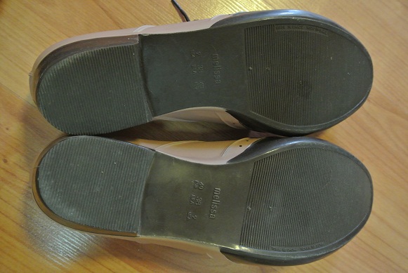 รองเท้ายาง Melissa ในร้าน footwork ( made in Brazil ) มือสองสภาพดี มีรอยถลอกที่ส้น แต่อยู่ด้านใน เวลาใส่เดินมองไม่เห็น สีน้ำตาลชมพู มีกลิ่นหอมด้วย size40 ส้นหน้า 2.5ซม. ประมาณ 1"