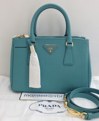 New Prada saffiano luxtote size 25 2zip with strap in Anice