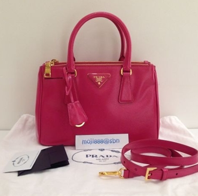 New Prada saffiano luxtote size 25 2zip with strap in peonia ชมพูหนังเงา ราคา 55,5000 Last Price