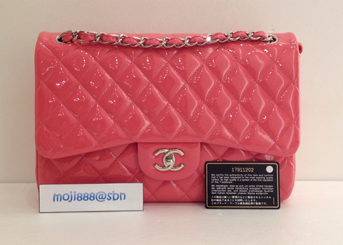 New Chanel Classic 12" jumbo Patent leather in pink shw