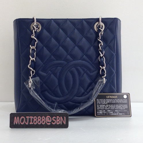 USED Chanel PST caviar shw สีน้ำเงิน navy blue สีสวย สภาพดี ทรงเป๊ะ