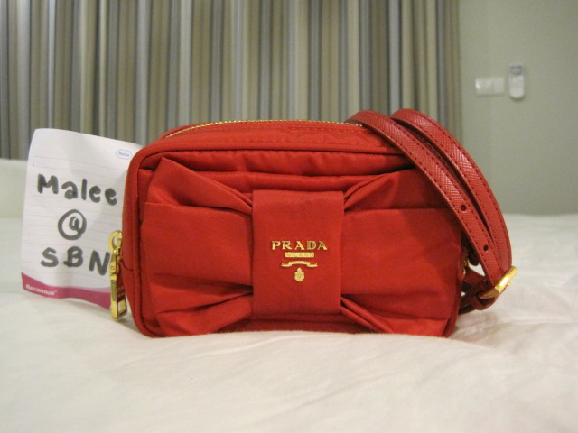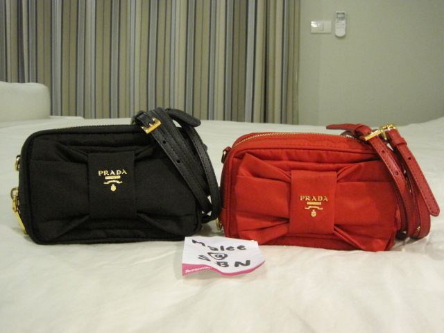 [size=+3]New!! Prada mini Contenitori Tracolla ( Rosso , nero ) ของใหม่ค่ะ Size 6"X 4"X 2" สะพายแบบ Cross bodyได้ และสอดมือที่ใต้โบว์ถือเป็นคลัชก็ได้ค่ะ สวยเก๋ไม่เหมือนใคร มี2สี แดงและดำ มีพร้อม การ์ด สายยาว carebook ขาย 16,000