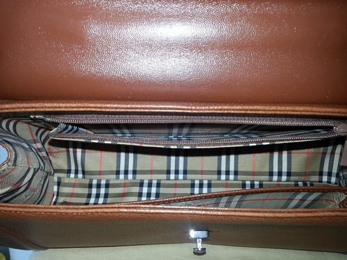 สภาพสวยมาก ด้านหลังมีช่องใส่แผนที่ ด้านในกระเป๋าเป็นสีแดง มีรอยใช้งานทั่วไป ไม่มีอุปกรณ์