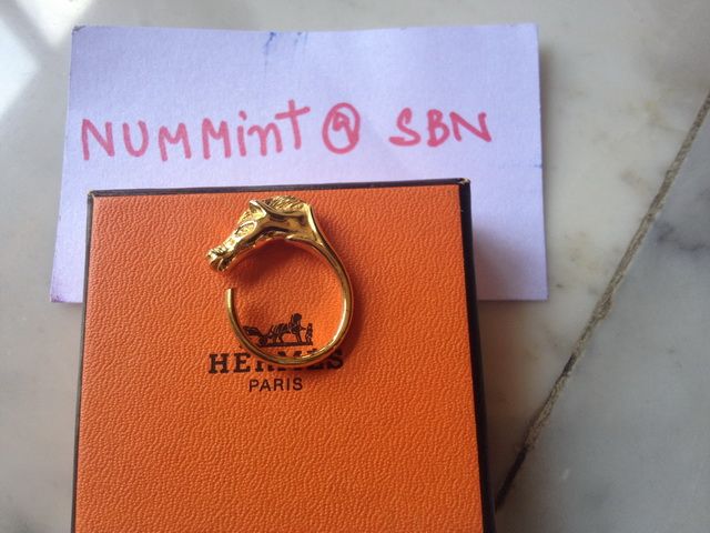 Used Like New: Hermes Gold tone Horse Head Ring