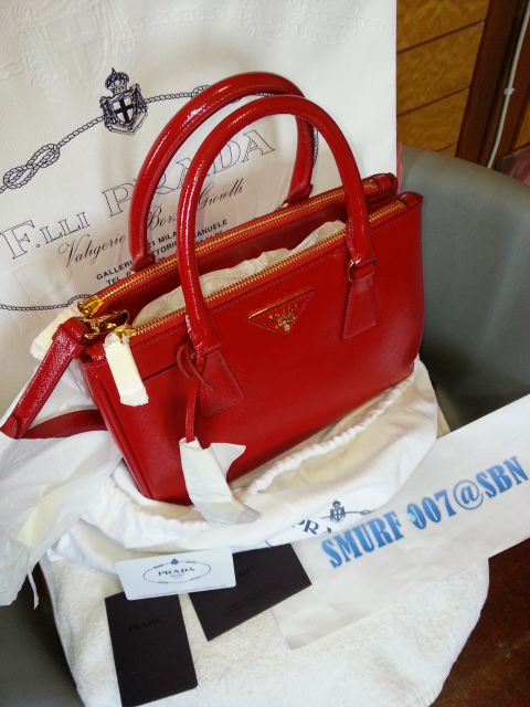 ***New Prada Saffiano Double Zip with Strap size 25cm สีแดงRosso รุ่นใหม่ล่าสุด!! (ver.2013) ช่องภายในบุหนัง สีแดงคุณหนูสุดๆ น่ารักมากๆเลย อุปกรณ์มีให้มาครบเช่นกันค่ะ ถุงผ้า การ์ดPrada ถุงกระดาษ โบว์ พร้อมใบเสร็จจากช้อบPrada ใบเสร็จและการ์ดลงวันที่เดือนOct'13นี่เลย ใหม่มากๆ