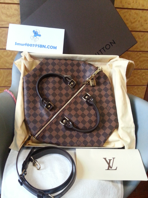 ***New LV Speedy Bandouliere 30 Damier (with strap) Made in France / Date code 3183 ใหม่สุดๆ ที่ยุโรปหาของยากมากๆ ช้อปไทยก็ของเกลี้ยงตลอดและแพงมาก ใบนี้ได้มาล็อตใหม่ตอนปรับราคาแล้วค่ะ @-@ อุปกรณ์ครบเช่นกันค่ะ มีกล่องแข็ง สายรัด ถุงผ้า ถุงผ้าใส่กุญแจ กระดาษรองกล่อง แท็คการ์ด ชุดกุญแจ สายสะพาย ถุงกระดาษ พร้อมใบเสร็จตัวจริงจากช้อปLVลงวันที่30Oct'13 ราคาปกติ 41,900 บาท ราคาพิเศษเหลือเพียง40,000บาทเท่านั้น!! (ถ้าไม่รับกล่องลดเพิ่ม500บาท เหลือเพียง39,500บาทเท่านั้น!!) รีบโทรด่วน!!