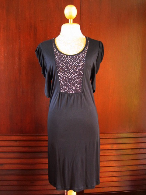 Dress ผ้าRayon ยืด สีดำสนิท แต่งลูกปัดสีทองด้านช่วงอก แขนจับจีบแต่ไม่พองนะคะ ใส่แล้วดูตัวยาว +ดูผอมด้วยนะคะ