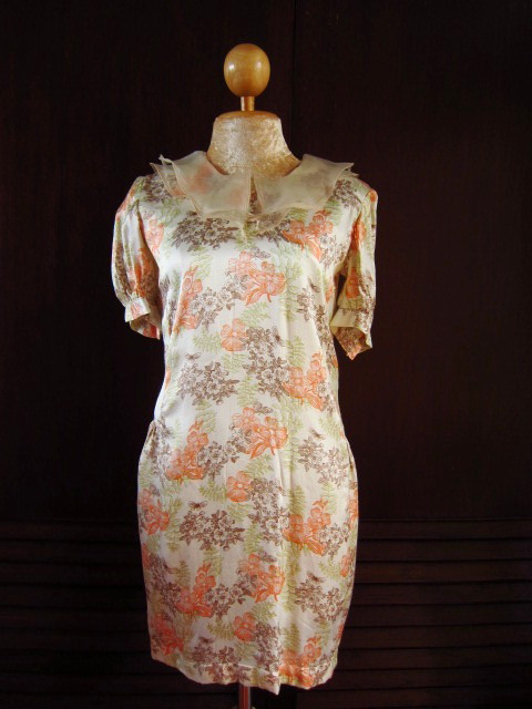 Dress สีครีม เนื้อผ้าอะไรไม่แน่ใจนะคะ แต่นิ่มและลื่น แต่งช่วงคอปกด้วยชีฟองแบบแข็ง ซื้อใน Siam Canter คะ