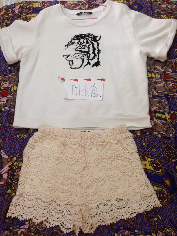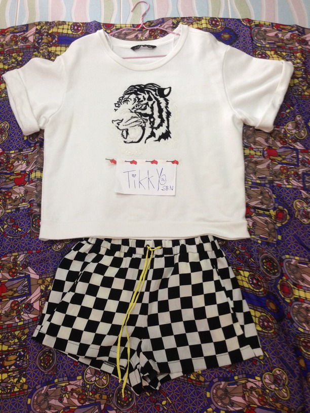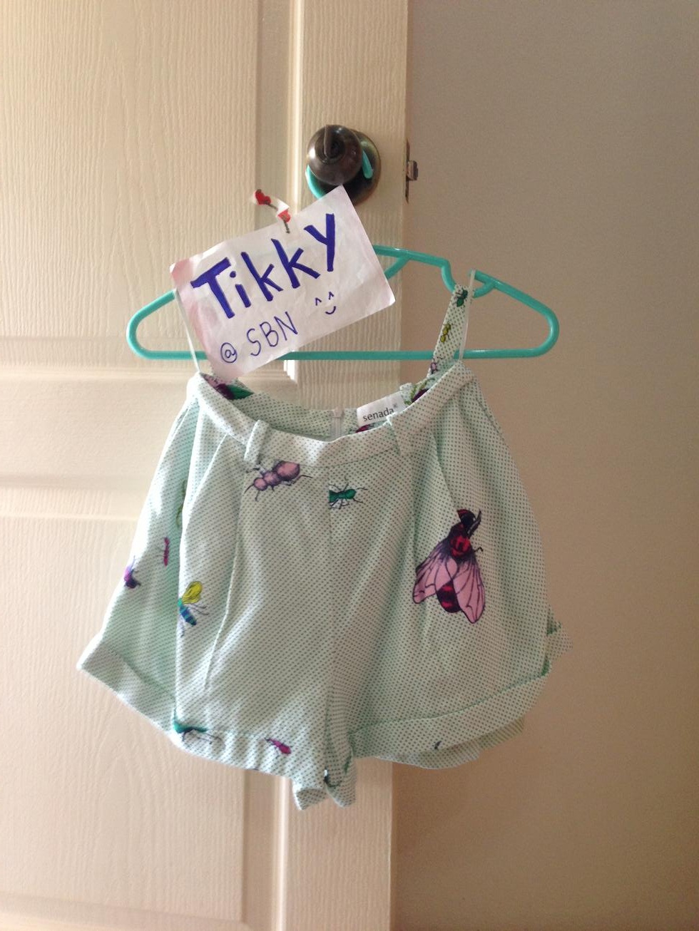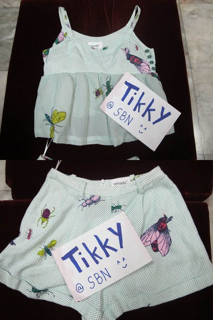 Senada เสื้อCropกับกางเกงลายแมลง size s used once ขายทั้งชุดค่ะไม่แยก3,000บ.
