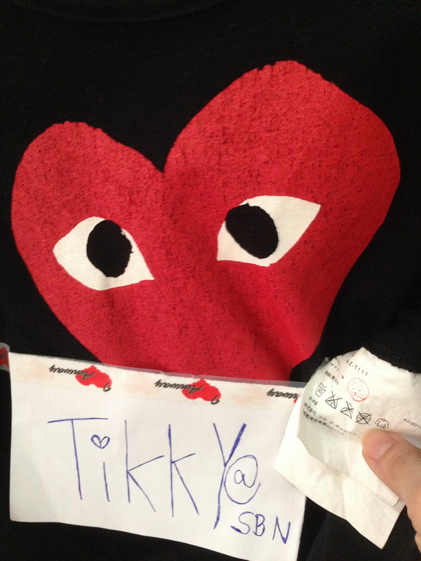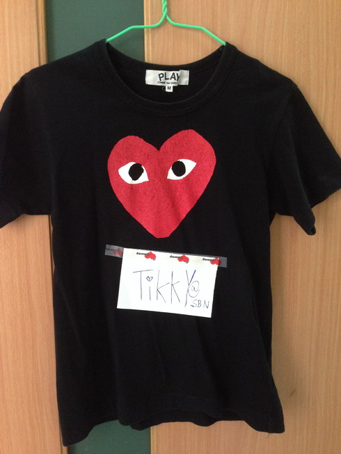COMME DES GARCONSเสื้อยืด สีดำหัวใจแดงค่ะ size M Lady ลายสกรีนหัวใจแดงแตกตามรูปค่ะ ขาย 1,400บ.