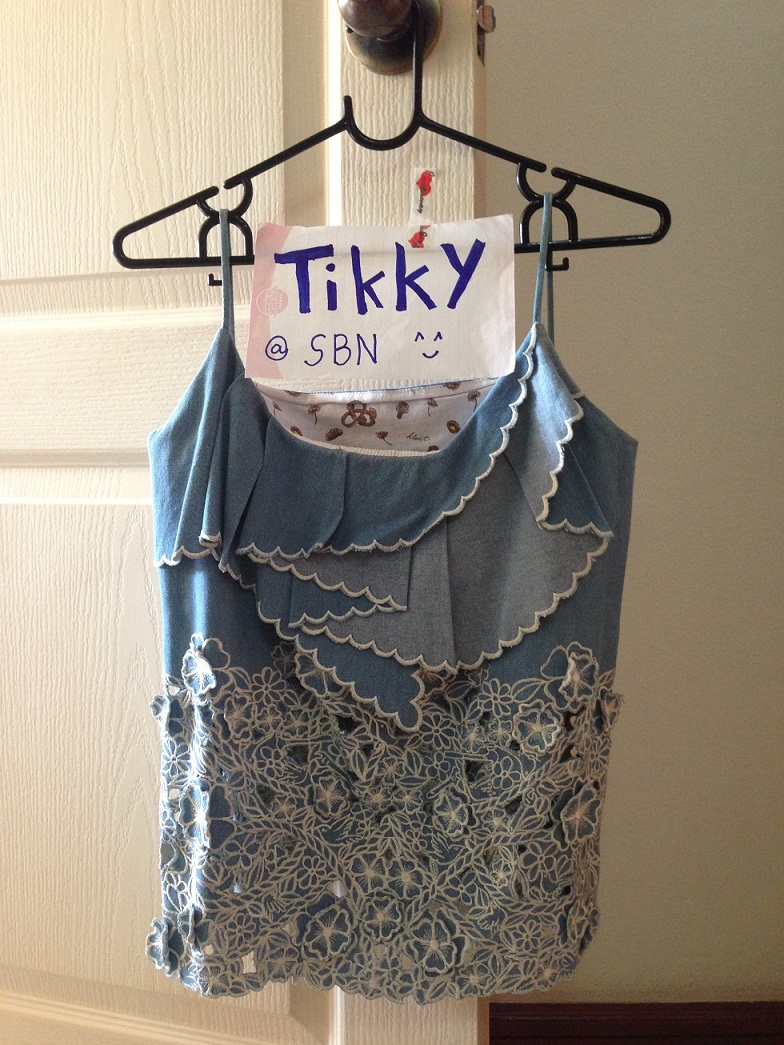 Klosetเสื้อสายเดี่ยวลายฉลุsize M เก็บสายขึ้น1" ปล่อยออกได้ค่ะขาย 2200บ.