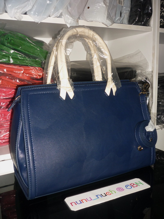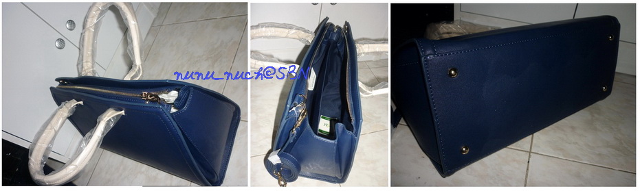 สีน้ำเงินสด ตัดกับซิปสีทอง ทรงแข็งอยู่ทรง สวยค่ะ มาพร้อมสายสะพายให้ด้วย