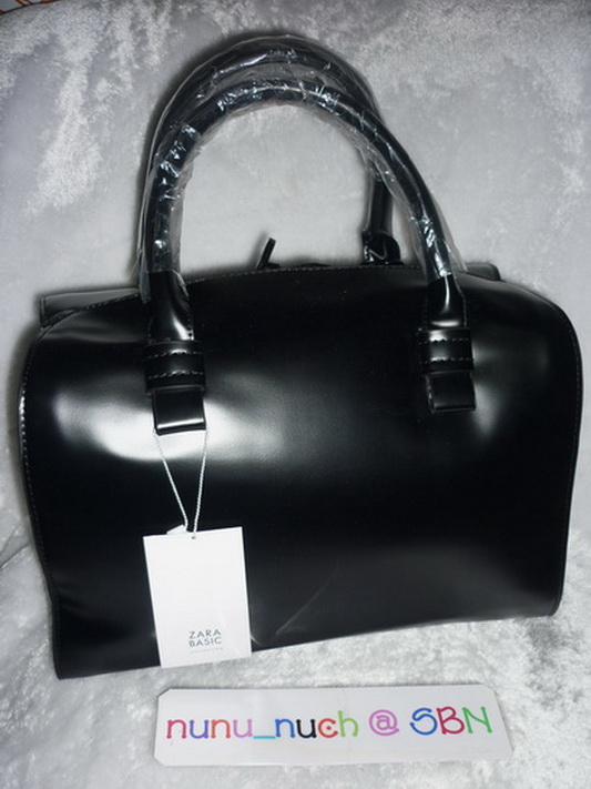 ZARA Bowling Bag With Strap กระเป๋าสะพายหนังมันสีดำ ทรงแข็ง