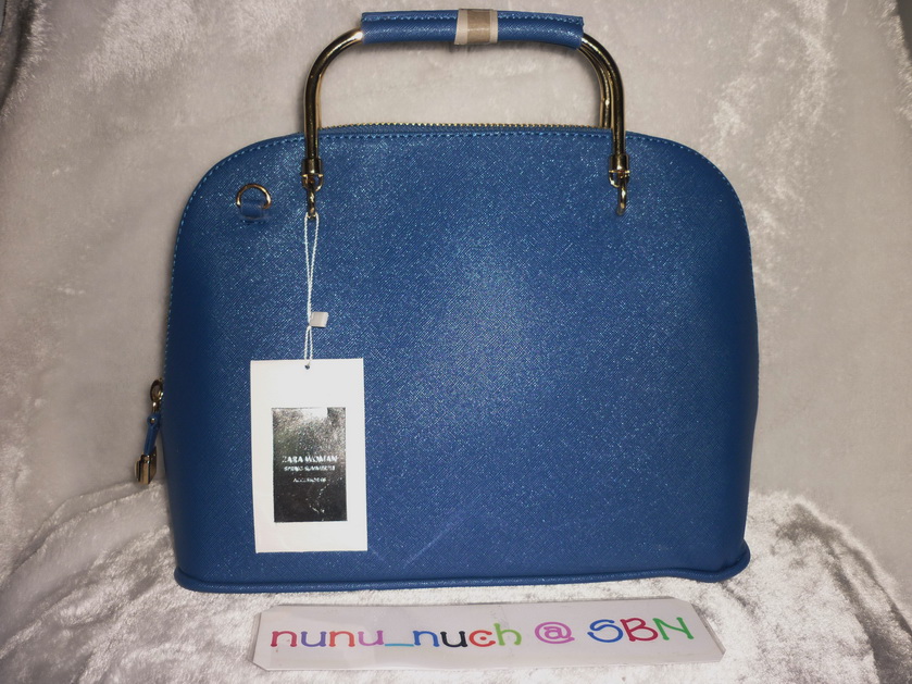 ZARA Blue Structured Bowling Bag กระเป๋าถือทรง speedy