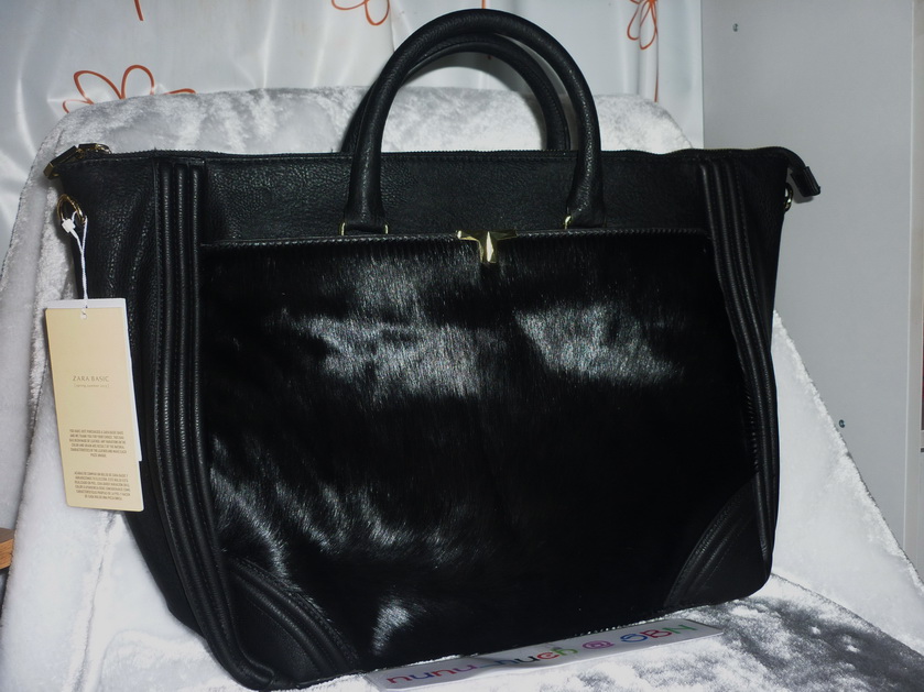ZARA BLACK FUR SHOPPER BAG