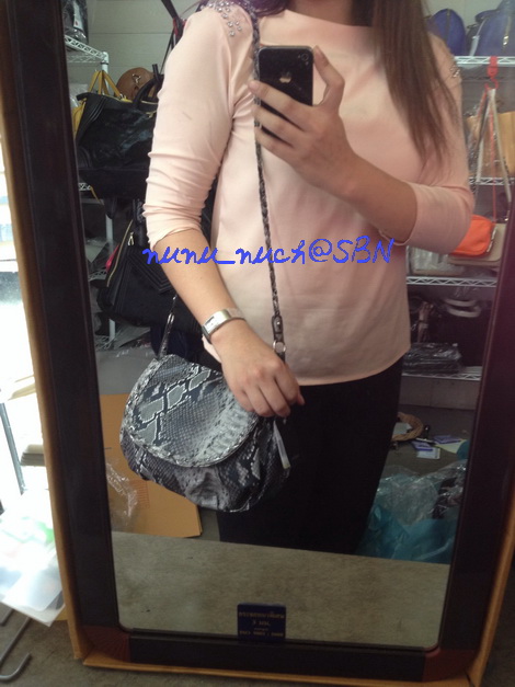 กระเป๋าทรงสวย ไฮโซ เก๋สวยด้านหน้าด้วยลายหนังงูสุดชิค