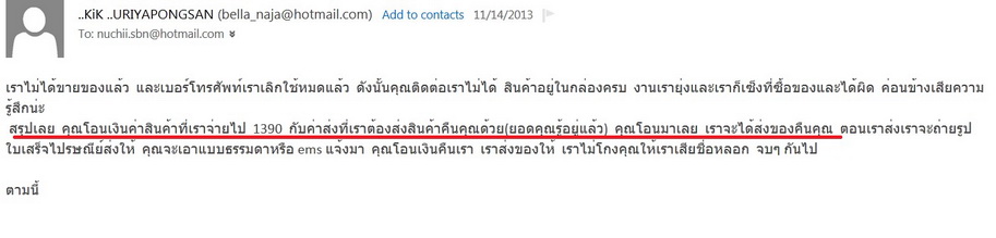 ลูกค้าเป็นใครจากไหน มีแค่ที่อยุ่และ email ติดต่อ ให้เราโอนเงินทั้งที่สินค้าอยู่กับคุณ