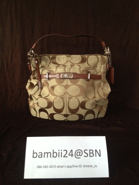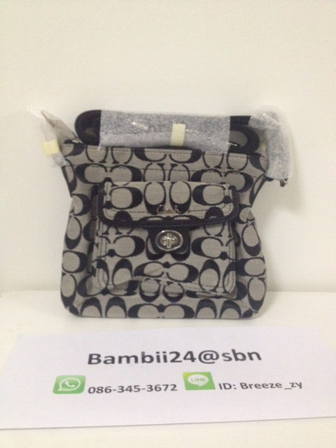 f70699 coach signature jacquard map bag ราคา 5500 บาท ตัวกระเป๋าเป็นผ้าหนาลายsignature เย็บขอบด้วยหนังอย่างดี สายสะพายปรับระดับสั้น ยาว ได้นะคะ เหมาะสะพายไปทำงานหรือไปเรียนก็ดูดีคะ ขนาด 12"(L) x 11"(H) x 3 1/4"(W)