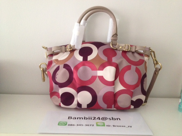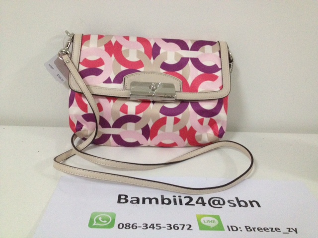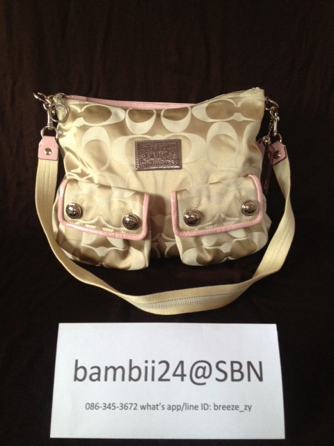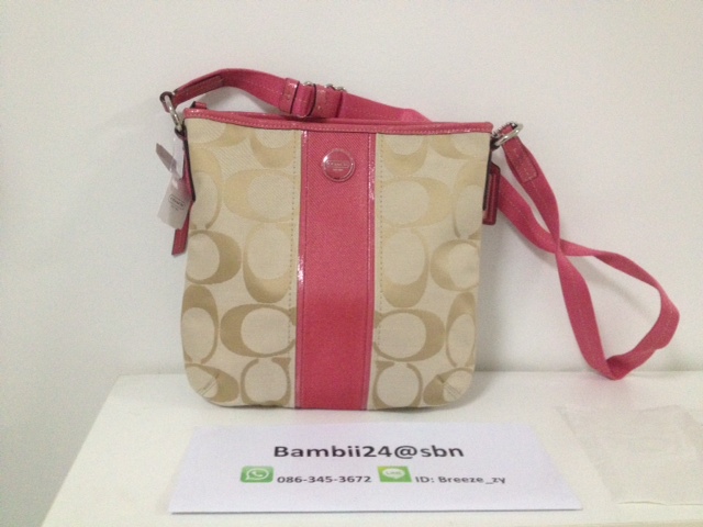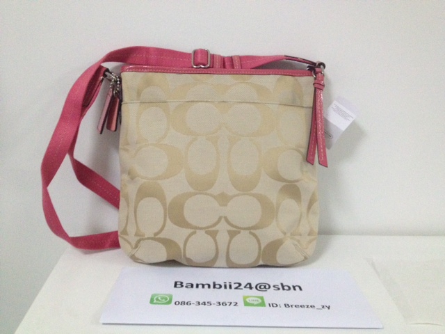 f70698 coach signature jacquard flight bag ราคา 4000 บาท ตัวกระเป๋าเป็นผ้าหนาลายsignature เย็บขอบด้วยหนังอย่างดี สายสะพายปรับระดับสั้น ยาว ได้นะคะ เหมาะสะพายไปทำงานหรือไปเรียนก็ดูดีคะ ขนาด 8 1/2 "(L) x 10 1/4"(H) x 3 1/4"(W)