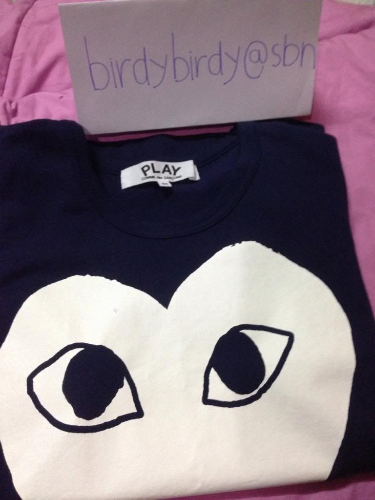 NEW!!COMME DES GARCON แขนสั้นสีน้ำเงินลายหัวใจ size L ladies มีถุงพลาสติกกับถุงกระดาษให้นะคะ
