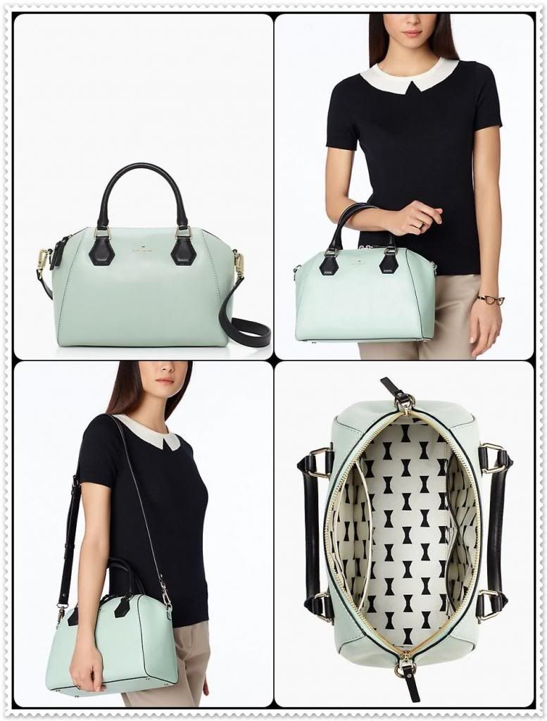named for a bustling new york city byway, this handbag is at home when on the town. crafted of soft, smooth leather with a contrasting hue at the handles, this sleek zip-top begs to be toted to-and-fro, wherever you go. a removable shoulder strap lets you suit it to your needs while a bow tie print lining is a fun flourish inside.