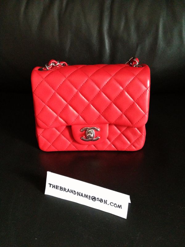 -Super SALES!! Chanel mini square 7" Lamb Red Lip ขอเสนอที่ 78,000 บาทเท่านั้น อุปกรณ์ครบ