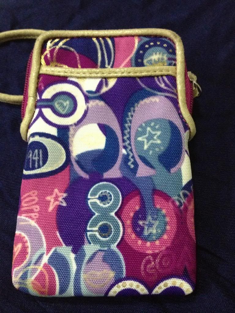 USED กระเป๋าโทรศัพท์ Coach คล้องมือได้ ตัวกระเป๋าสียังใหม่ ไม่ซีด ไม่เปื้อน แต่ตรงขอบที่เป็นหนังลอกแล้วค่ะ แต่ไม่น่าเกลียด ป้ายcoach สีทองถลอกนิดนึง แต่โดยรวมสภาพดีค่ะ ข้างในยังใหม่ แคร์การ์ดหายแล้ว แต่มีกล่องค่ะ ขอขายที่ 600 บาทค่ะ งดต่อนะคะ
