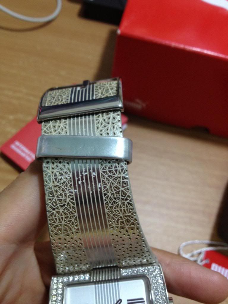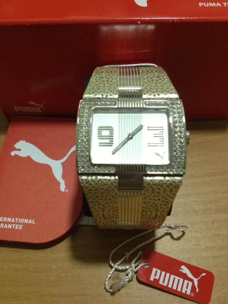 USED นาฬิกา PUMA สีทอง สวยมากค่ะ หน้าปัดประดับเพชร ตรงหน้าปัดใหม่เอี่ยมมากค่ะแต่ตรงสายมีร่องรอยใช้งานค่ะ แต่ใส่แล้วมองไม่เห็น ซื้อมา 100$ ค่ะ ปล่อยที่ 1000 ถ้วนเลย งดต่อนะคะ แม่ค้าให้ดูรูปละเอียดทุกมุมเลยค่ะ ^^