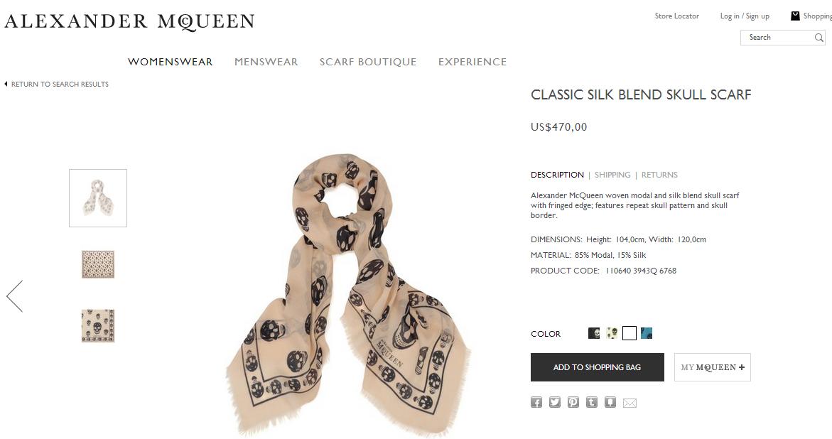 Used Alexander Mc Queen Skull Scarf ราคา 3,300 บาท (ราคาชอป 19,xxx ค่า) รวมส่ง ems ค่า