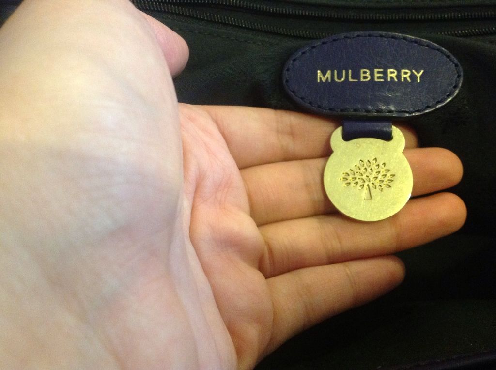 2. brass ที่เป็นตรา Mulberry o่ะค่ะ มันห้อยออกมาไม่สมมาตร (อ่านมาจาก ebay ว่าถ้ามัน off center --> replika)