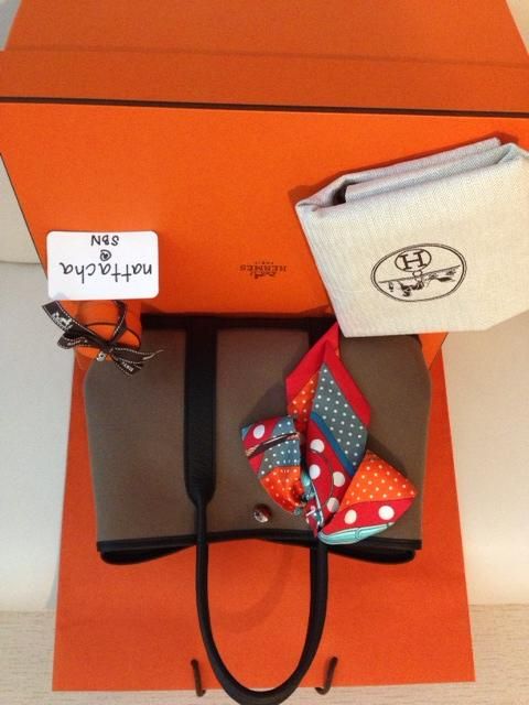 USED ZONELIKE NEW Hermes Garden Party Canvas (Etoupe/Noir) stamp "Q" สีของจริงสวยคลาสสิคค่ะ FULL SET!! เป็น two-tone ใหม่ล่าสุดคร้าา @ 65,500Bht! ราคารวม twilly ด้วยนะค่ะ mint condition!!!ให้สิทธิ์ต่อรองได้นิดหน่อยสำหรับลูกค้าที่พร้อมโอนค่ะ LINE/WHATAPP 085-945-9528