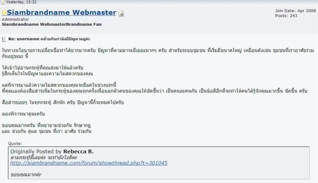 จากคำแนะนำของเพื่อนหลายคนและเราเองก็อยากจะเปลี่ยนชื่อ login ให้หมดปัญหาไป เราก็เลยเข้าไปคุยกะทางเว็บมาสเตอร์แล้วนะคะ แต่ได้คำตอบมาประมาณนี้ค่ะว่าเป็นไปได้ยากที่จะเปลี่ยน login เราก็พอเข้าใจเหตุผลนะคะว่าถ้าใครๆสามารถเปลี่ยน login กันได้ง่ายๆเนี่ยก็อาจจะยิ่งทำให้เกิดความสับสนยุ่งยากในเคสอื่นๆทีใครอยากจะเปลี่ยนก็เปลี่ยนได้ (หรือดีไม่ดี อาจเป็นช่องทางให้มิจฉาชีพมีทางหลบหลีกมากขึ้นอีกก็ได้)