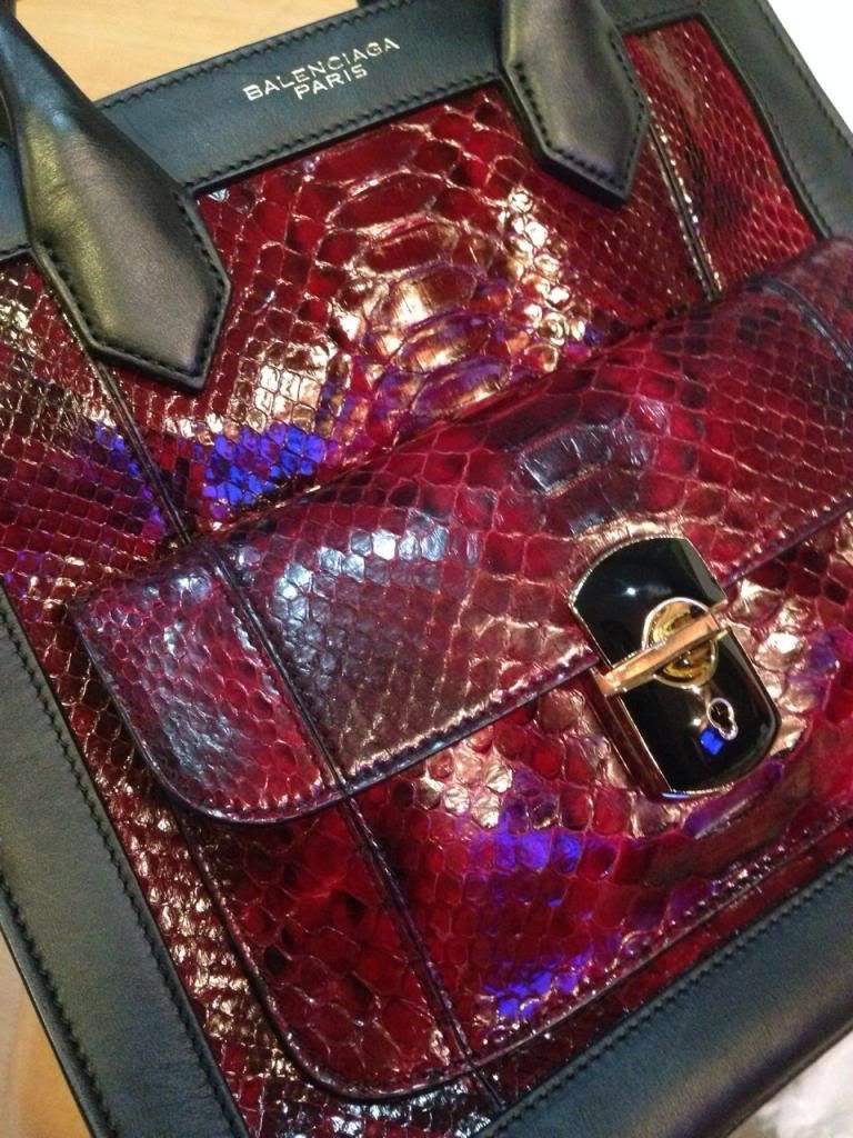 Balenciaga Padlock Handbag Medium Size with Red Reptile Skin (USED ONLY 2 TIMES! Like NEW)