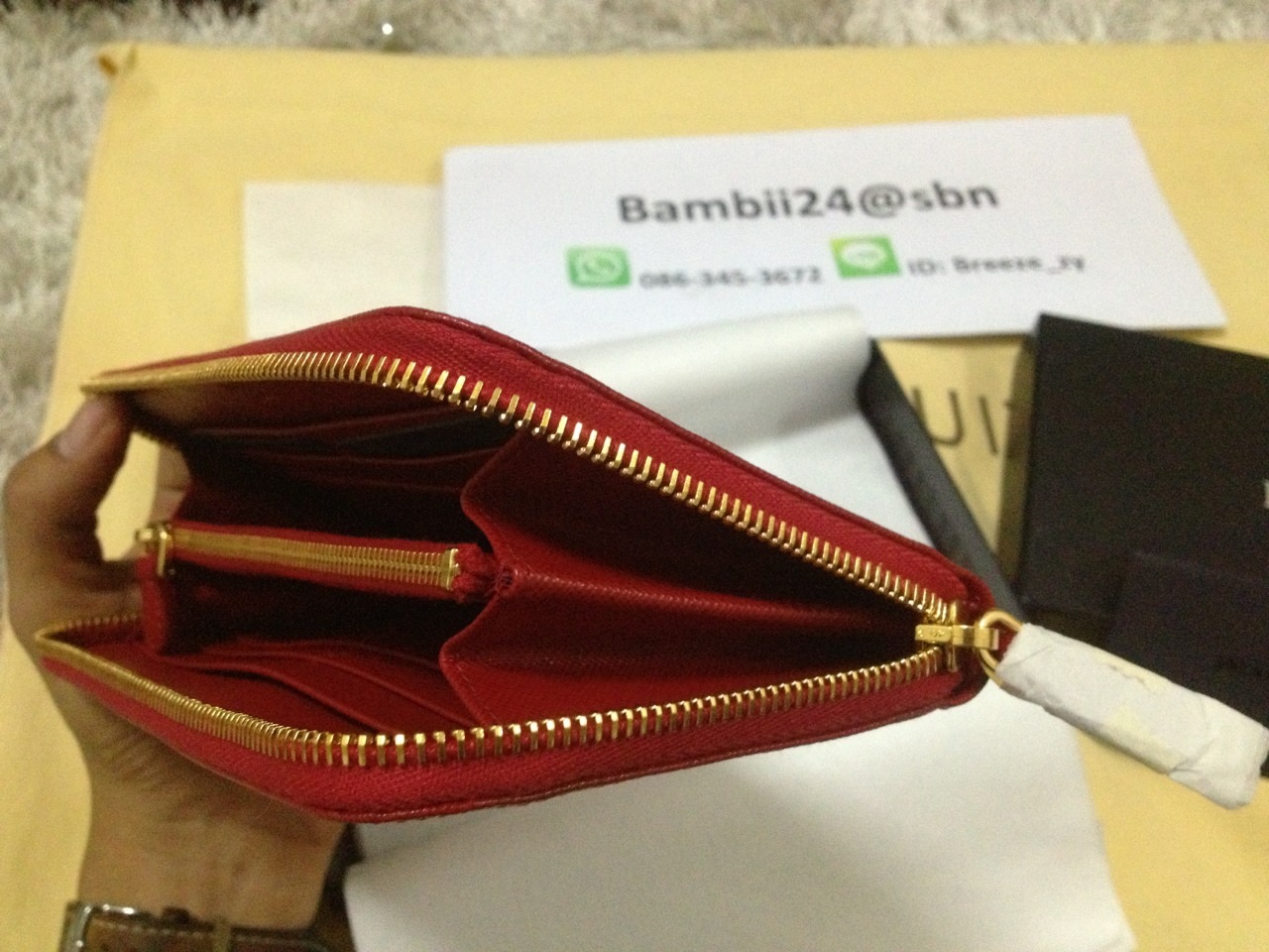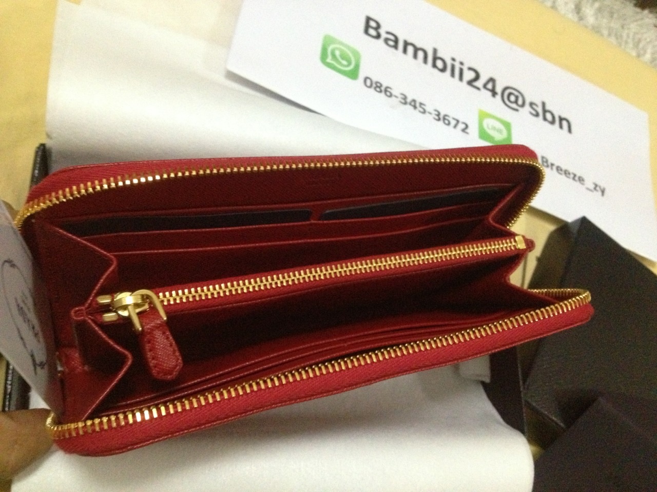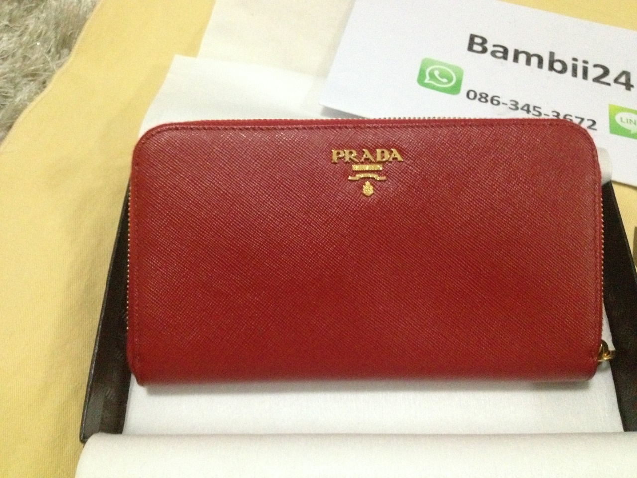 new prada saffiano zip around color : fuoco ราคา sold k.pla บาท สีแดงสดสวยม๊ากกกคะ สีเฮงคะ ต้อนรับตรุษจีน