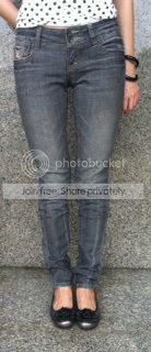กางเกงยีนส์CC-OO เอวต่ำ สีเทากลางๆ แมทกับเสื้อผ้า รองเท้าได้ง่าย ไม่ว่าจะเปรี้ยว เก๋ ได้หมดคะ ประมาณใต้สะดือคะ สภาพดีมากคะ ใส่ไป1 ครั้ง เอว 27นิ้ว สะโพก 37 นิ้ว เป้ากางเกงยาว9.5นิ้ว รอบต้นขา 20-22นิ้ว ปลายขากว้าง 10 นิ้ว ขอขาย 650 บาท (ซื้อมา 2090) --- ( งดต่อ)
