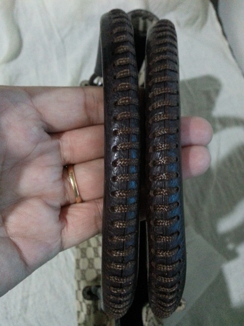 กระเป๋า ปีใหม่ๆด้วย ปี04 ลายไม้ยังคมชัด ด้านในกระเป๋า มีรอยเลอะ 2จุดเล็กๆ นอกนั้นกริ๊ป
