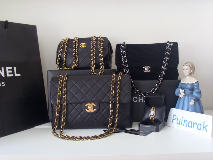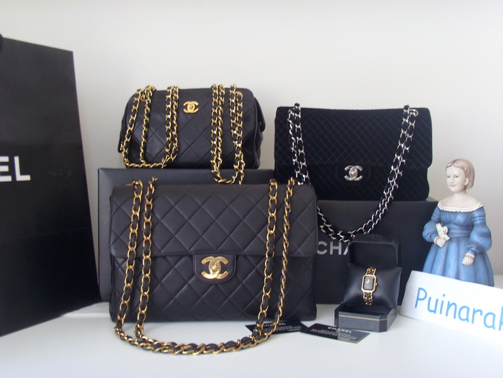 CHANEL Vintage Brown Lamp CHANEL CLASSIC JUMBO CAVIAR BLACK GOLD HARDWARE