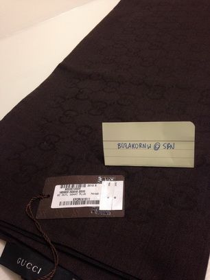 [/IMG]14NEW: Gucci Scraf กว้าง 70 x 200 cm ค่ะ สีช้อคโกแลตค่ะ เนื้อเนียนนุ่ม ราคา 9500 บาทค่ะ