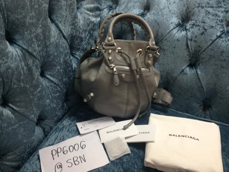 BRAND NEW BALENCIAGA MINI POM POM GREY หมุดเงิน มีถุงผ้า สายยาว การ์ด กระจก 39,900 บาท Sale 37,900