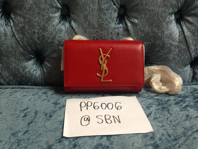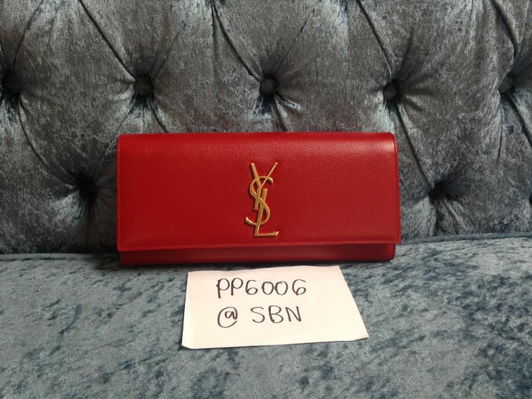 BRAND NEW SAINT LAURENT CLUTCH RED มีถุงผ้า การ์ด หนังตัวอย่าง 28,000 บาท