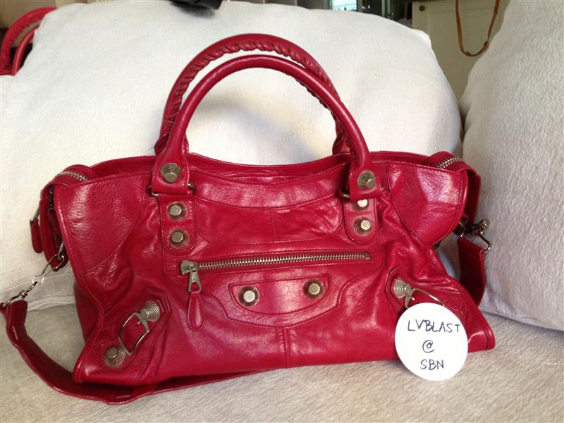 Used Balenciaga Part-time สีแดง Ruby หมุดเงิน ใบนี้สีสวย สภาพดีมากค่ะ หูจับยังแข็ง สีไม่เฟด มุมกระเป๋ายังไม่ถลอก อุปกรณ์ครบค่ะ