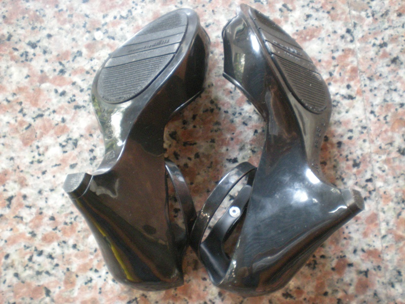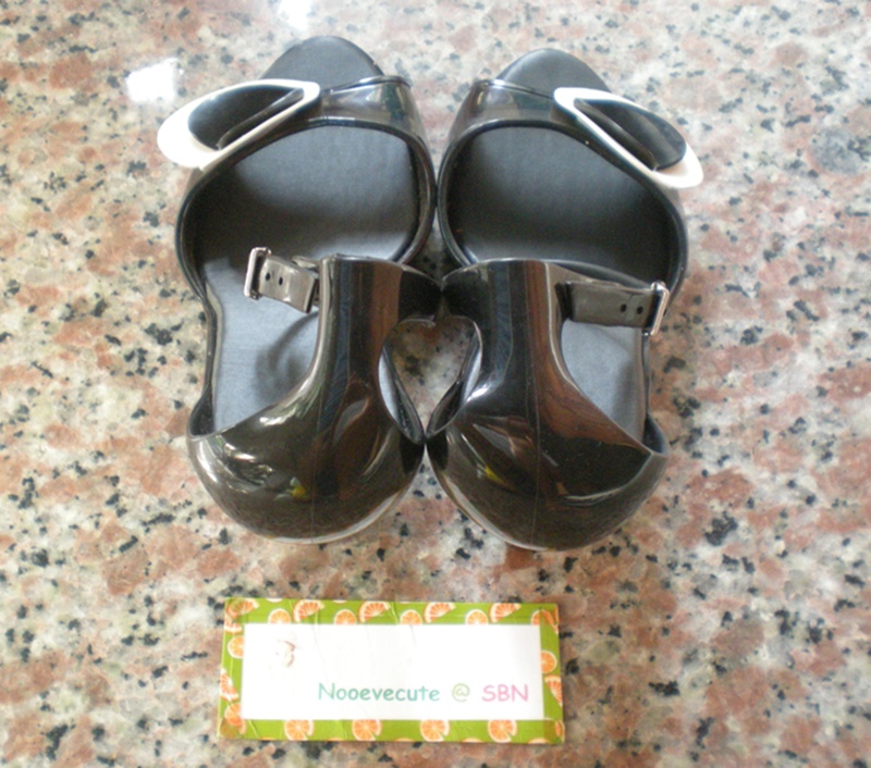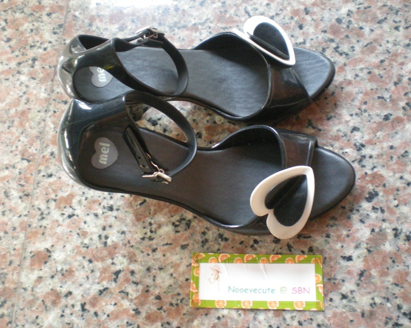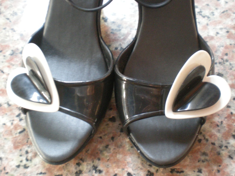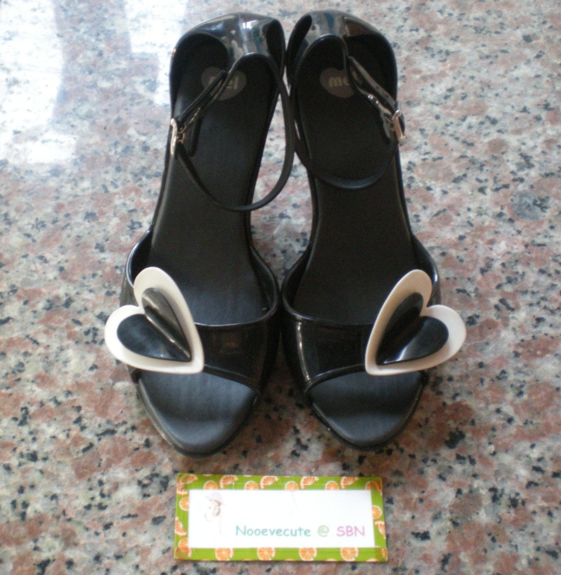 รองเท้า Mel Apple Ankle Strap Wedge รองเท้ายาง สีดำ หัวใจ ส้นสูง 3" ขนาด US 7 ความยาวประมาณ24ซม. ใส่นุ่มสบาย สภาพดี ราคา 950ค่ะ
