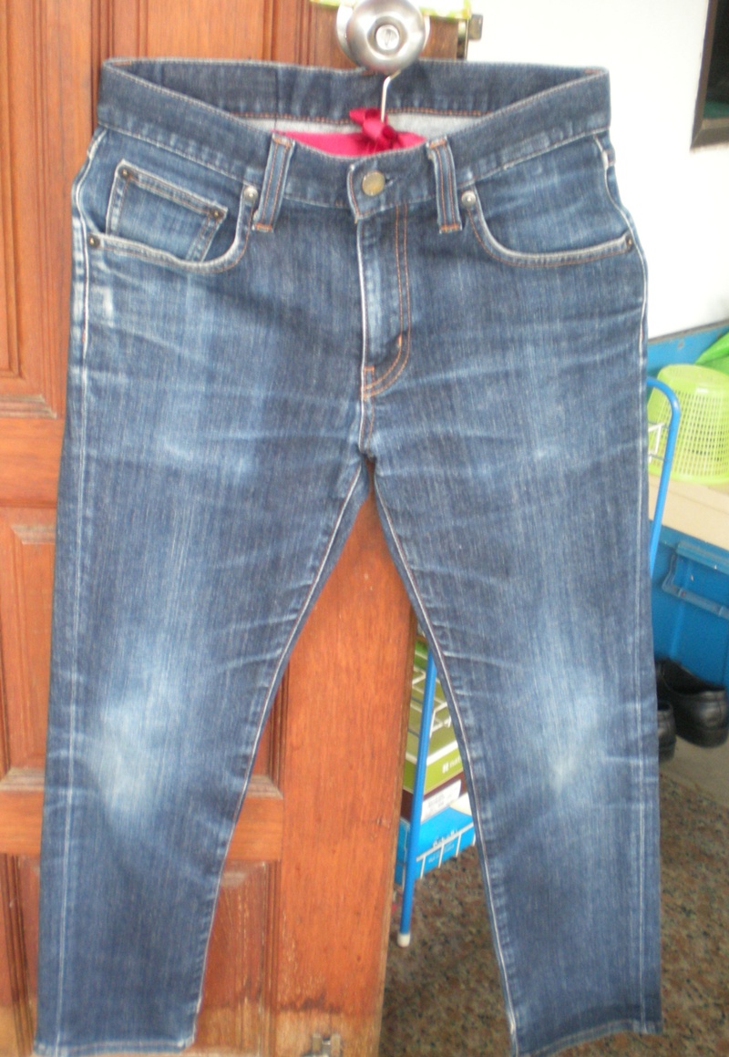 กางเกงยีนส์ Uniqlo ทรง skinny fit เอว 31" เป้า 7" สะโพก 37" ยาววัดจากขอบเอวมาปลายขา 34" ราคา 400