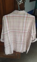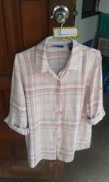 เสื้อเชิ๊ต Karen Scott Made in China สีครีมลายสก็อต รอบอก 42 วงแขน 21" ยาว 28" ราคา 250 ค่ะ