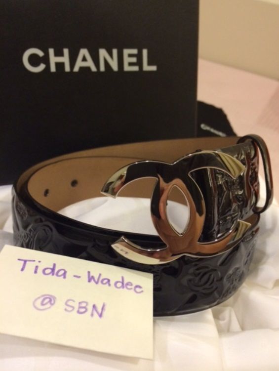 Chanel Vernis Monogram Belt Size 85cm หัวโลโก้ Chanel สีเงินใหม่กริ๊บ หนังแก้วพิมพ์ลายโลโก้ และ icon chanel ทั้งเส้น สวยและหายากมากนะคะรุ่นนี้ ซื้อมาไม่เคยใช้ซักที ขอปล่อยให้คนอื่นดีกว่า มีกล่องและถุงผ้าหุ้มหัวเข็มขัดให้Special Price 19,500 - ขอรูปเพิ่มได้ค่ะ