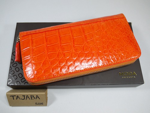 ผลิตจากหนังส่วนท้องของจรเข้แบบเดียวกับที่แบรนด์ระดับโลกเลือกใช้ และเป็นหนังที่คุณภาพดีที่สุดของตัวจรเข้ สีส้มสวยสดใส