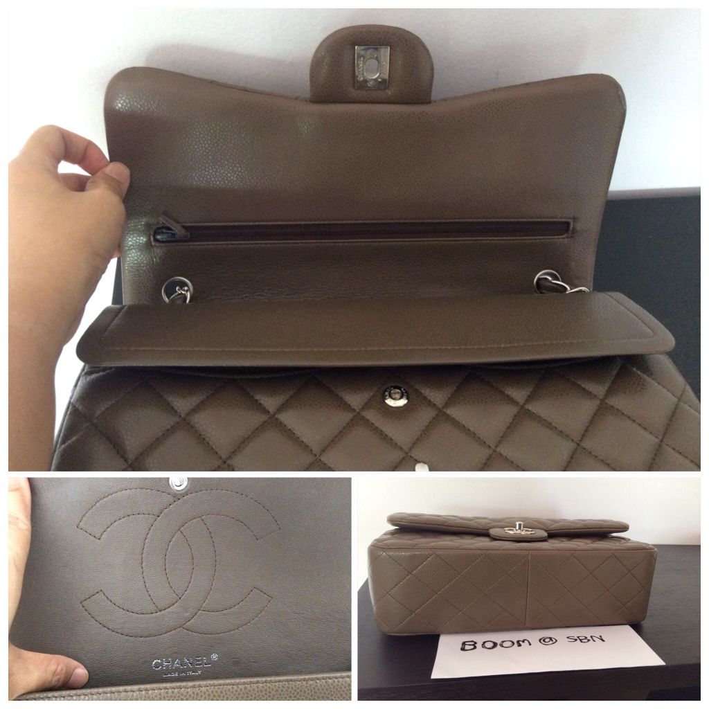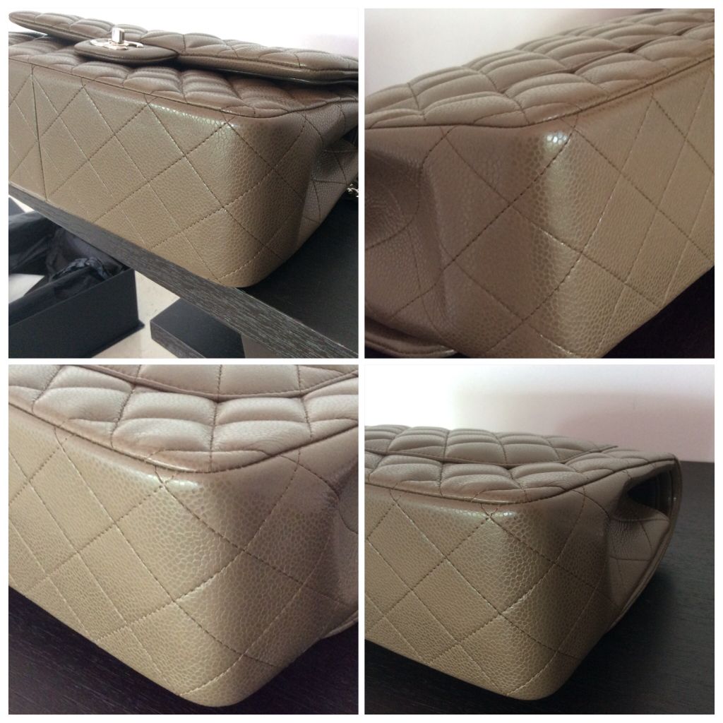 Used like new chanel jumbo caviar kaki colour holo 167 หนังเต่งตึง เงาสวย มุมครบ ฝาหลังมีรอยพับตอนเปิดกระเป๋าเล็กน้อย.ขอรูปเพิ่มได้คะ