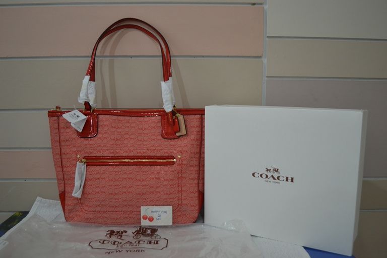 Coach Poppy signature C oxford สี tomato สีแดงอมส้ม สดใสสุด ๆ อุปกรณ์ครบ กล่องกระดาษ ถุงพลาสติกจาก Shop ลดราคาเหลือ 4500 บาท คุ้มสุด ๆ ค่ะ