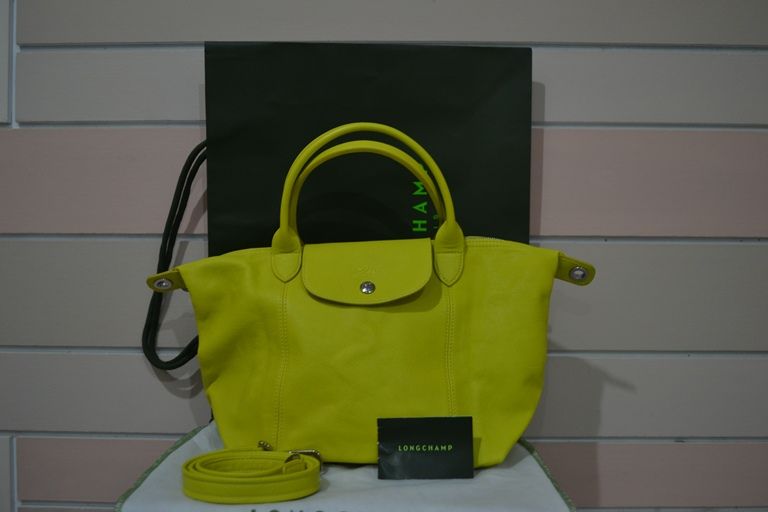 Longchamp Le Pliage Cuir size S หูสั้น มีสายสะพาย สี Lemon-yellow แถมฟรี ถุงกระดาษใบใหญ่ มาพร้อม Care card และถุงกันฝุ่น ใบนี้เป็นหนังลูกแกะเนื้อนุ่ม จาก Shop ที่ฝรั่งเศส ค่ะ ราคา 15700 บาท
