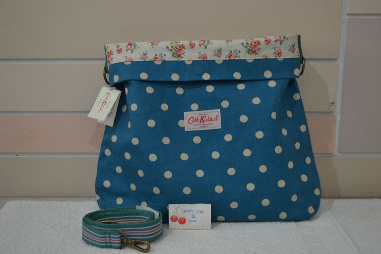 Cath Kidston Reversible Folded Messenger Bag เป็นผ้า Cotton สวยมากเก๋สุด ๆ ใช้ได้สองด้านด้านในเป็นลายดอกไม้ ด้านนอกเป็นลาย Big Spot มีสายสะพายข้าง ขนาด 36 x 40 x 10 cm ขายราคา 2580 บาท ใน Shop 2980 บาท